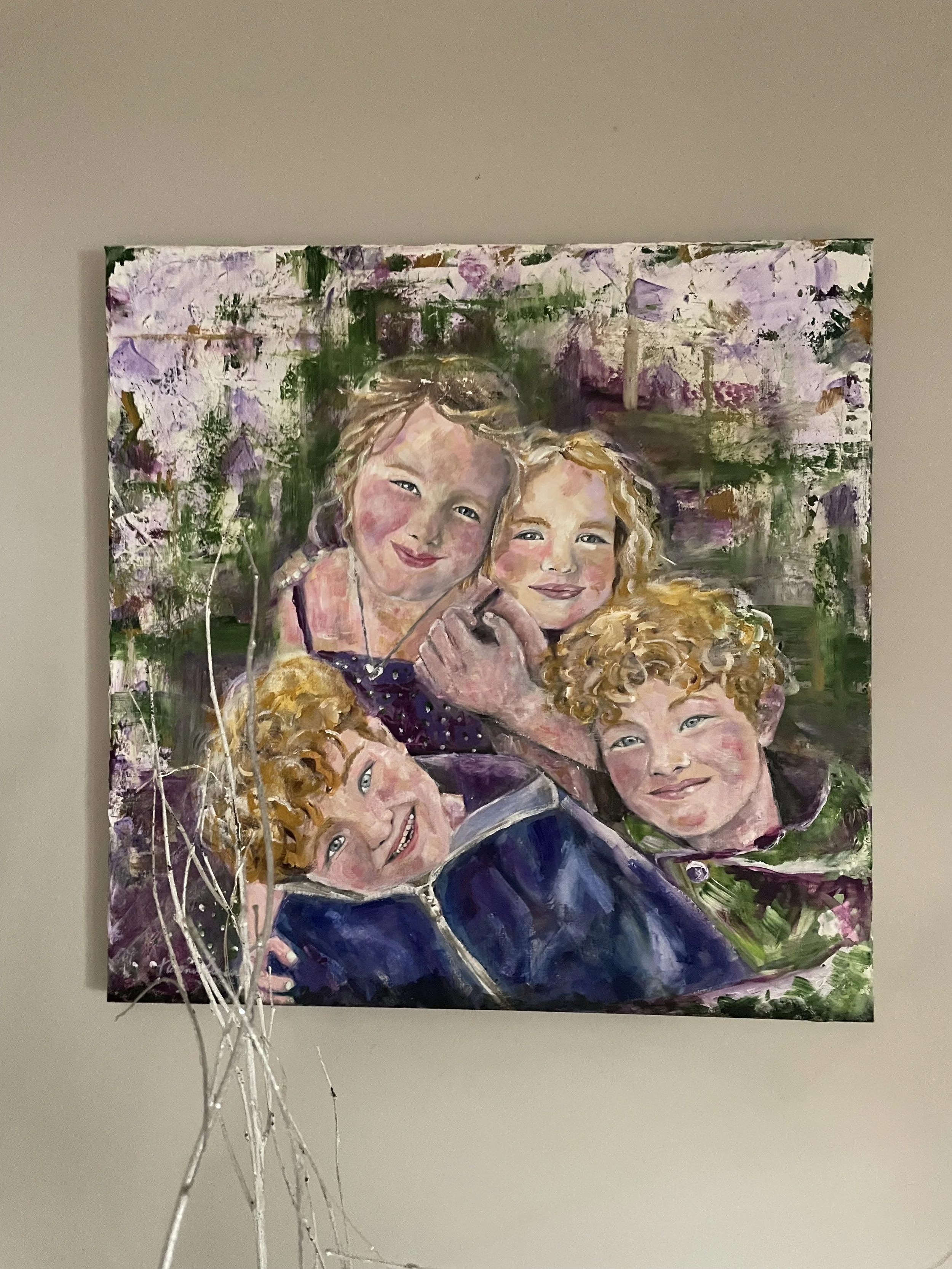 Family portrait commissioned for the grandparents of the grandchildren. Hand painted. Acrylic. 50cm/50cm.